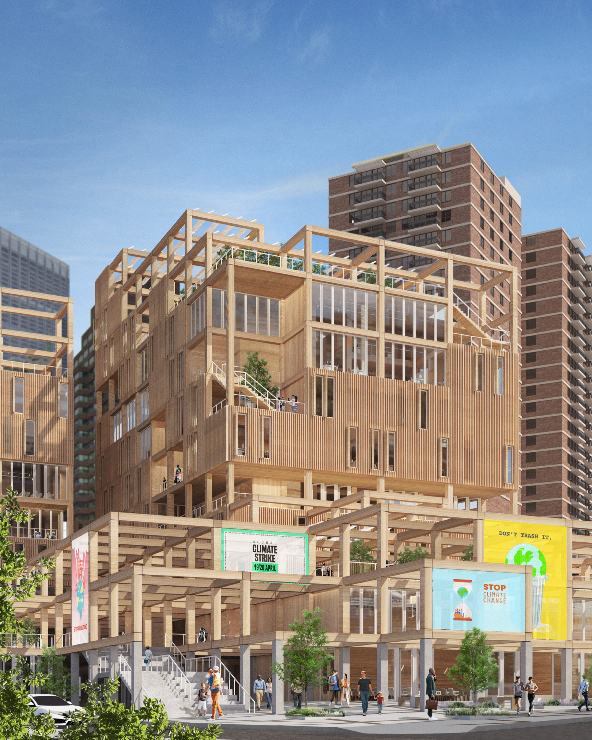 "The Climatorium" is a potent response to the climate crisis in NYC, aligned with the IPCC's call for decarbonization within 8 years. Positioned at 250 Water Street, this project reimagines buildings for Net Zero performance, catalyzing "post-carbon thinking." It serves as the headquarters for the Civilian Climate Corps, a cornerstone of the 'Green New Deal,' converging administrative functions and transformative training under one roof. Beyond its functional role, the Climatorium fosters local community cohesion and reflects the essence of this emerging civic institution.