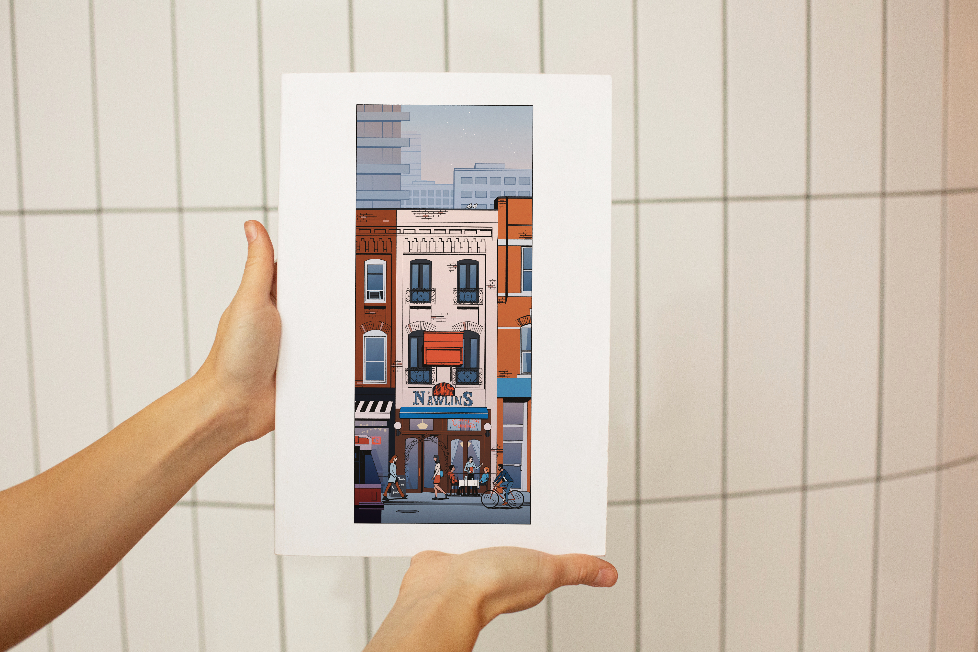 This illustration pays homage to N’Awlins Jazz Bar, a beloved and lively Toronto restaurant that brought the spirit of New Orleans to Canada. Known for its authentic Creole and Cajun cuisine, it transported diners to the heart of Louisiana. The vibrant ambiance, complete with live jazz music and snug decor, made it a cherished spot. Sadly, like many establishments, N’Awlins closed its doors during the COVID-19 pandemic. This artwork is a heartfelt tribute to the family behind N’Awlins and all those who cherished this cozy haven for delicious food and soulful music. It captures the special place it held in the hearts of many, including my own fond memories of enjoying drinks at the bar amidst live music.